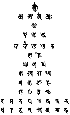 According to the Mahāvairocana Sūtra the alphabet can be used as the main focus of sadhana or spiritual practice. The preparatory stage of practice begins with contemplating aspects of the Dharma. The individual letters are linked to words which can be expanded into sentences of doctrine regarding the nature of experience. The letters are known as Dharma Doors. This practice goes back to the Lalitavistara Sūtra, but is probably best known in the Perfection of Wisdom Scriptures. So for instance the Pañcaviṃśatisāhasrikā Prajñāpāramita Sutra (The Perfection of Wisdom in 25,000 lines) says: